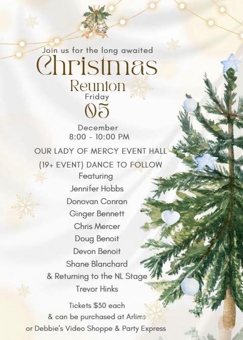 Our Lady of Mercy 101 Main Street, AguathunaEvent Name: Christmas ReunionLocation: Our Lady of Mercy Event HallDate: Friday, December 5Time: 8:00 PM – 10:00 PM The holiday spirit is calling — and we’re answering with a night of music, cheer, and community! The long-awaited Christmas Reunion is back at Our Lady of Mercy Event Hall, featuring a fantastic lineup of talented local […]