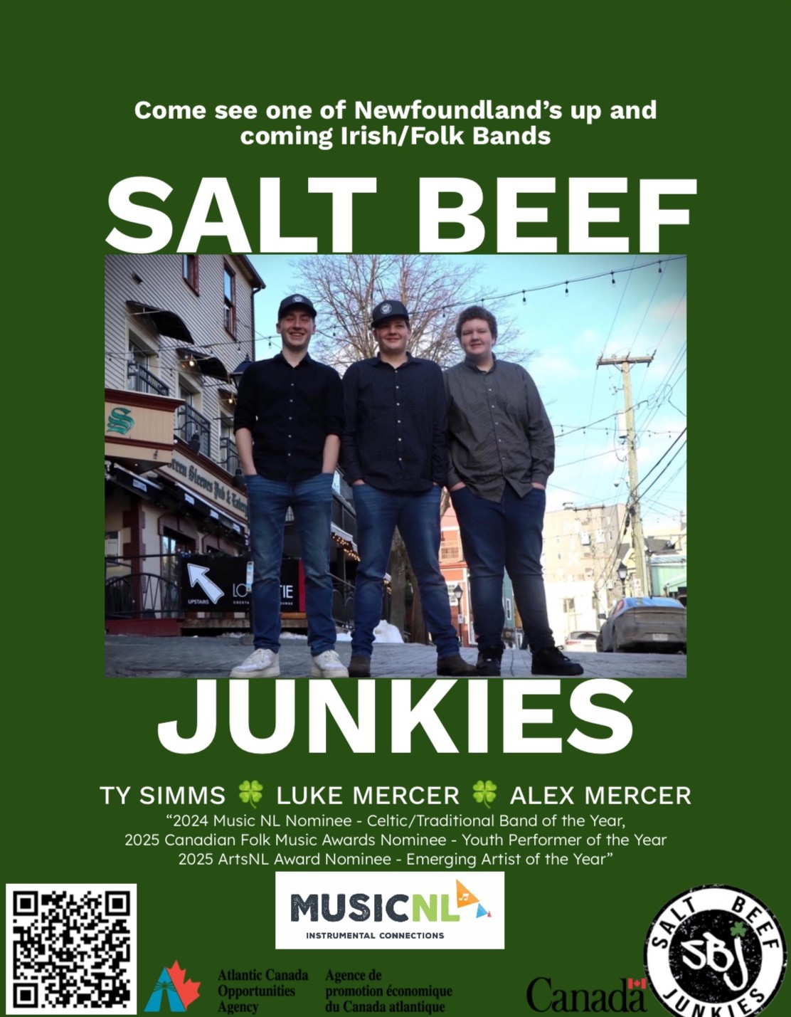 Playing for one night only in the Event Hall! With family roots in St George's! The Salt Beef Junkies! Just back from opening for Rum Ragged in Ireland! $10 admission!